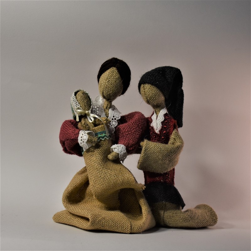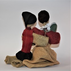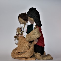 Natività composta da 3 elementi confezionata in tessuti naturali, come juta, canapa, lino e lana.